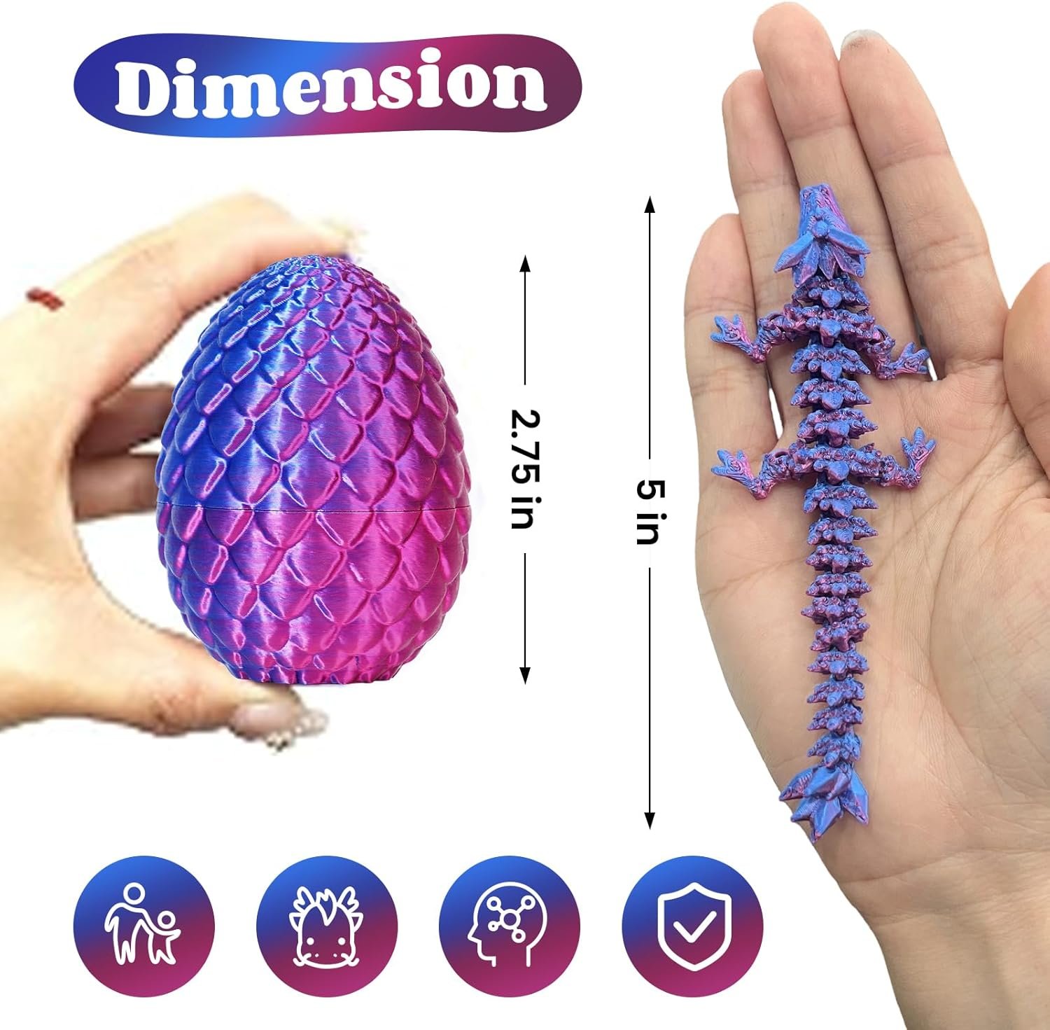 4PCS 3D Printed Dragon Egg, Mystery Easter Egg Articulated Crystal Animals Fidget Toy for Kid Boy Girls, 3D Print Small Dinosaur Eggs Toy Kindergarten Graduation Gifts for Boys (4-Piece-C)